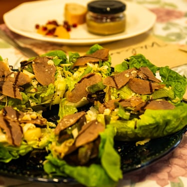 A menü minden alkalommal más, de az alapanyagok mindig a gazdaságunkból származnak – a mangalica, a borjú, a nyúl, a kameruni juh mind saját tenyésztésűek, ahogyan a friss zöldségeink , gyümöpcseink is. De ez az esemény nem csupán az étkezésről szól. Beszélgetünk a gazdaságról, az állatok életéről, és arról, hogyan neveljük őket tisztelettel és szeretettel. Sétálunk köztük, megmutatjuk őket.
