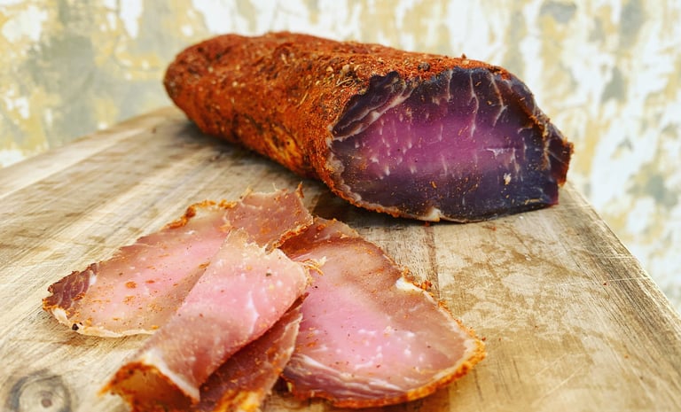 A füstölt áruinkat kizárólag parajdi sóval, szárazon érleljük, majd hideg bükkfafüstön füstöljük. Nem használunk gyorsérlelőt, fűszereket, pácleveket, adalékokat, színezéket – időt, figyelmet és hagyományos tudást teszünk minden darabba.